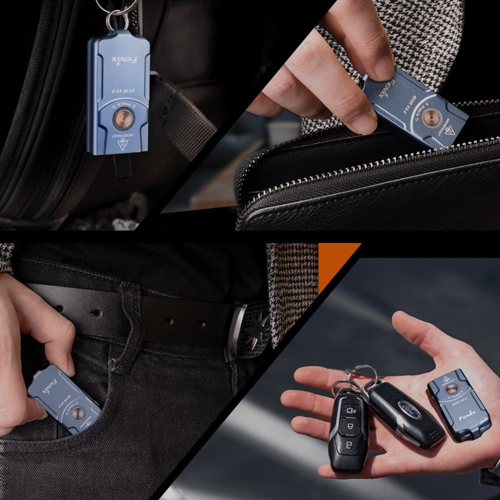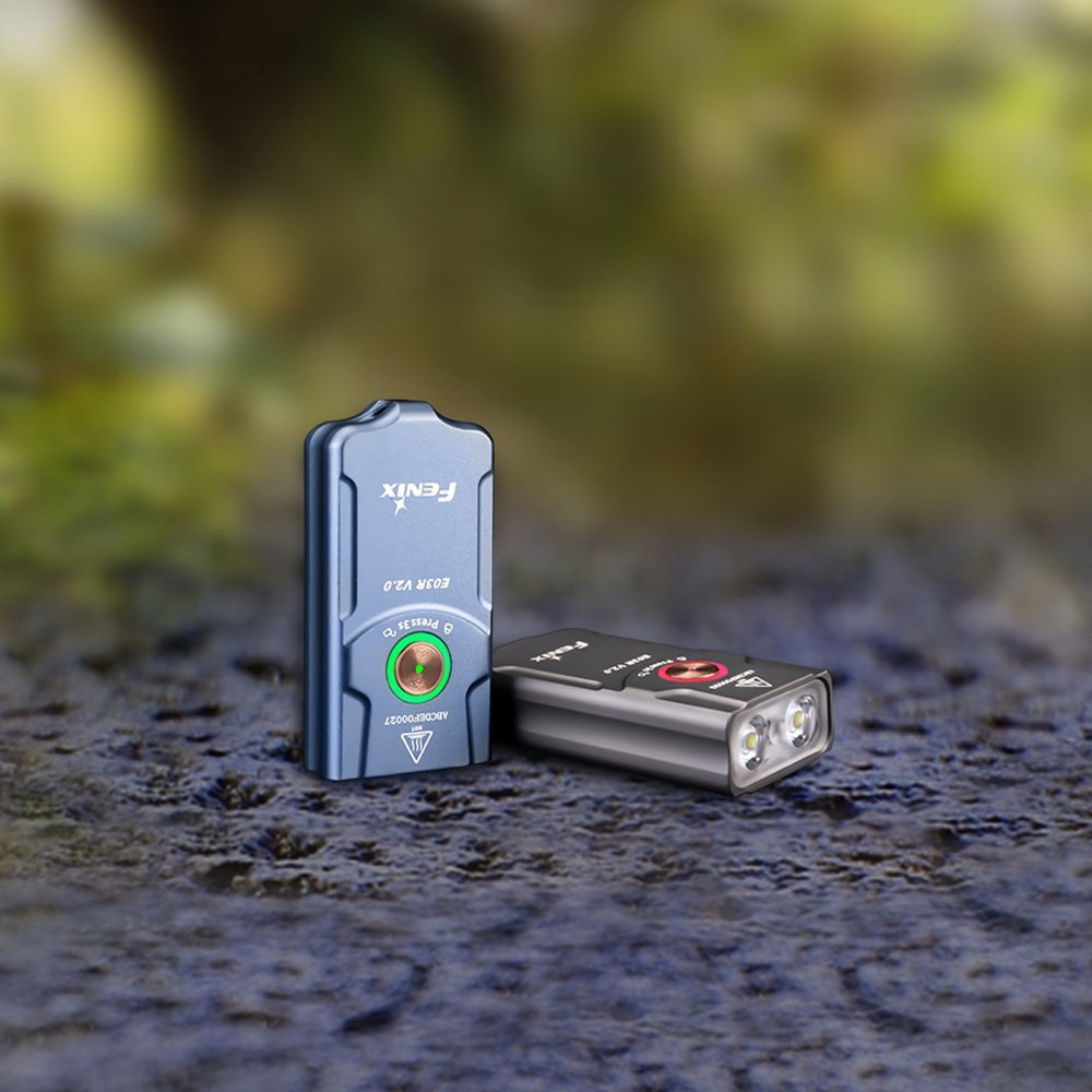Das Gehäuse der Taschenlampe besteht aus CNC-gefrästem Aluminium, das zusätzlich eloxiert wurde, um eine abriebfeste Oberfläche zu erhalten. Außerdem wurde die E03R V2 auf Schlagfestigkeit in 1 m Höhe getestet. Die kompakte Taschenlampe hat auch die IP66 Staub- und Regenschutzklasse.