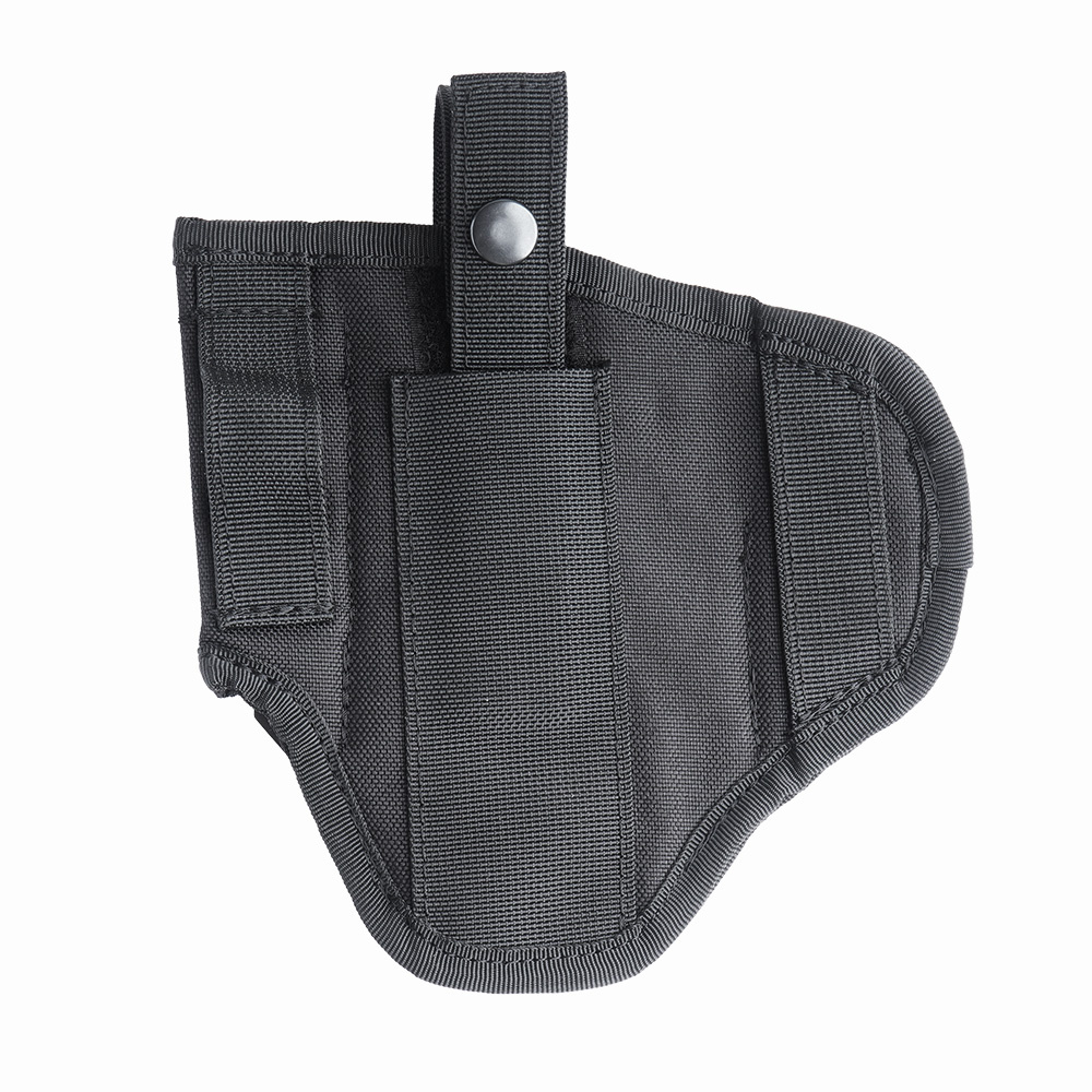 Universelles Holster für Handfeuerwaffen, ASG-Repliken und Luftgewehre. Es ist mit den meisten vorhandenen und handelsüblichen Waffenmodellen sowie Repliken kompatibel. Hergestellt aus dickem und strapazierfähigem 1000D-Polyester. Dank der beidseitigen Schlaufen kann es sowohl auf der linken als auch auf der rechten Seite bequem verwendet werden. Die Schlaufen sind in der Lage, einen taktischen Gürtel mit einer Breite von bis zu 60 mm aufzunehmen. Der Spannverschluss hält die eingebettete Waffe sicher fest.