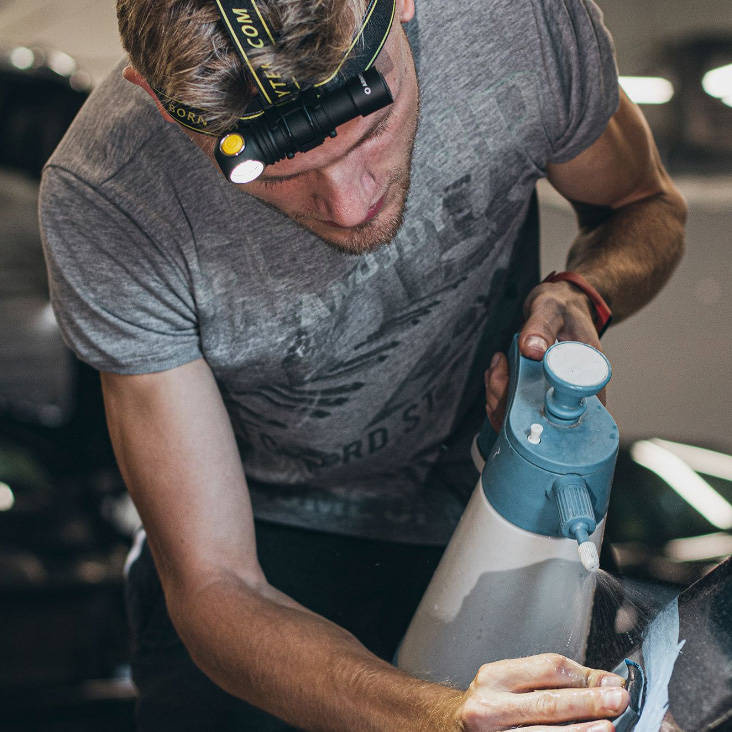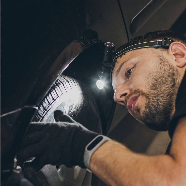 Widerstandsfähig gegen Staub, Wasser und Stürze aus bis zu 10 Metern Höhe. Die Wizard C2 Pro ist eine Winkeltaschenlampe, die mit dem mitgelieferten Stirnband auch als Stirnlampe verwendet werden kann. Die TIR-Linse aus gehärtetem Glas sorgt für eine verbesserte Raumausleuchtung. Die Taschenlampe wird von einem langlebigen Lithium-Ionen-Akku des Typs 18650 mit einer Kapazität von 3200 mAh betrieben, was für bis zu 13 Stunden im Grundmodus reicht.