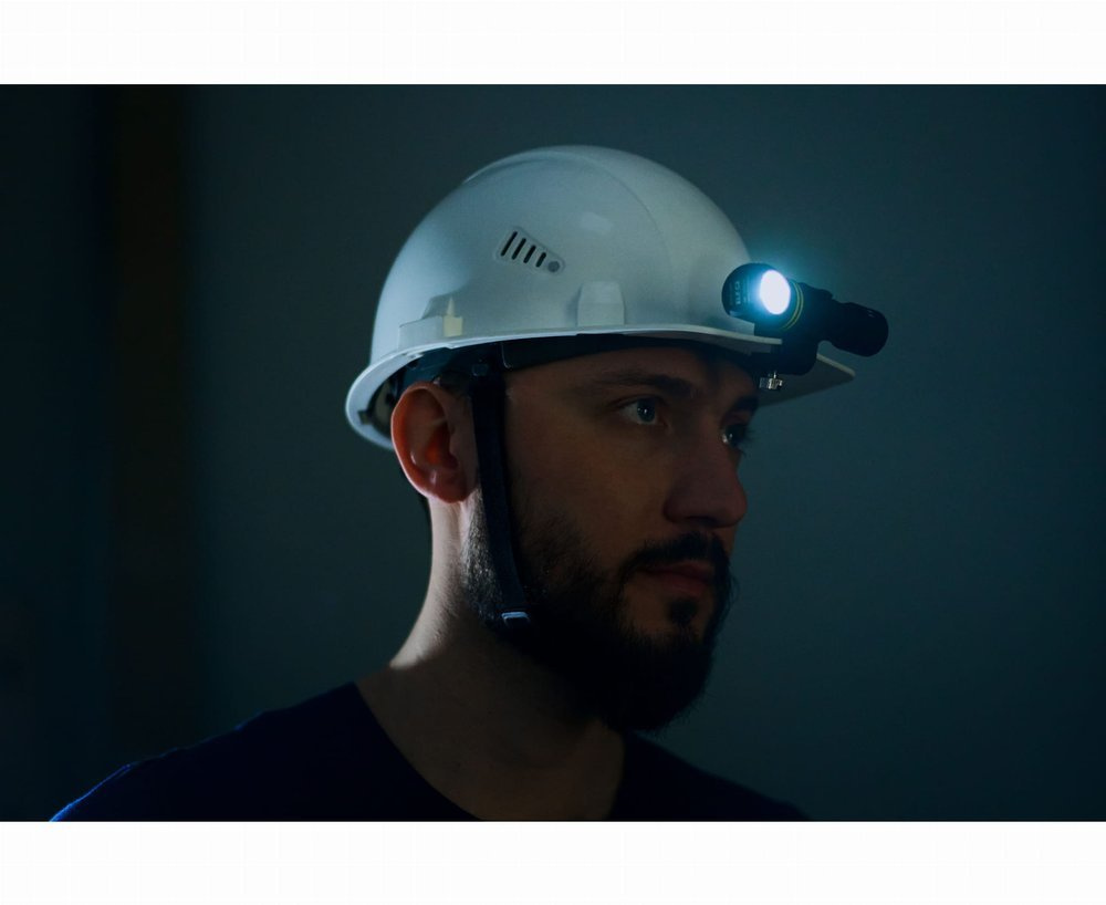 Die wiederaufladbare Elf C2-Taschenlampe wird mit einem Stirnband geliefert, das mit einer Halterung ausgestattet ist. Dadurch kann der Benutzer sie als Stirnlampe verwenden. An der Unterseite der Taschenlampe befindet sich ein Magnetfuß, so dass die Taschenlampe an einer Metalloberfläche befestigt werden kann und die Hände bei allen möglichen Arbeiten frei bleiben.