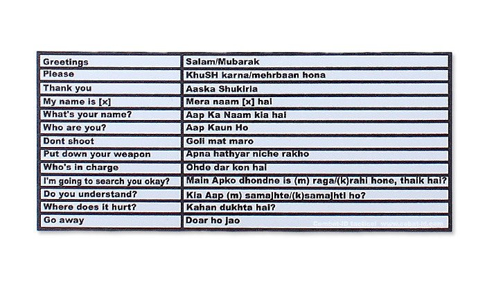 Buttstock Übersetzer Aufkleber mit grundlegenden Phrasen aus dem Englischen in Urdu Sprache übersetzt in Pakistan und Afghanistan Grenze verwendet.