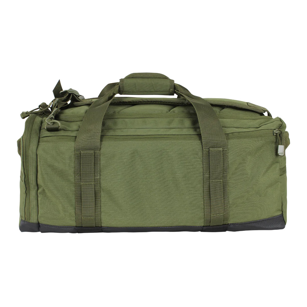 Militärtasche mit universellem Design, die auf dem Rücken oder über der Schulter getragen werden kann. Geschlossen mit einem Zwei-Wege-Reißverschluss. Ausgestattet mit großen Taschen und Fächern zur Entsorgung des mitgeführten Zubehörs. Aus Polyester, der Boden ist mit PVC verstärkt.