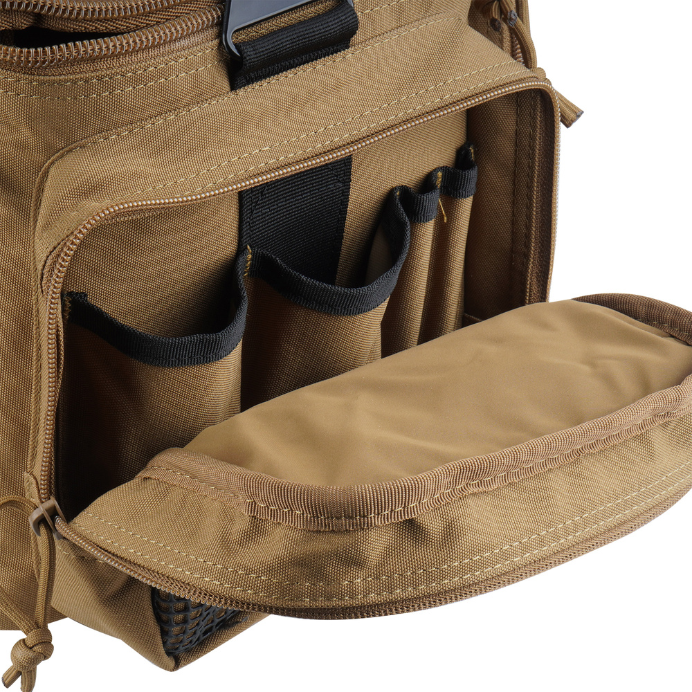 Die Ballistic Range Bag ist aus dickem 600D Cordura von Double Alpha Academy gefertigt. Sie ermöglicht es dem Benutzer, die notwendige Ausrüstung für den Schießstand oder andere Aktivitäten zu packen und zu tragen. Sie verfügt über mehrere Taschen und eine Reihe von praktischen Fächern oder Organizern. All dies ist darauf ausgerichtet, den höchstmöglichen Komfort und die Ergonomie beim Tragen der Ausrüstung zu gewährleisten.