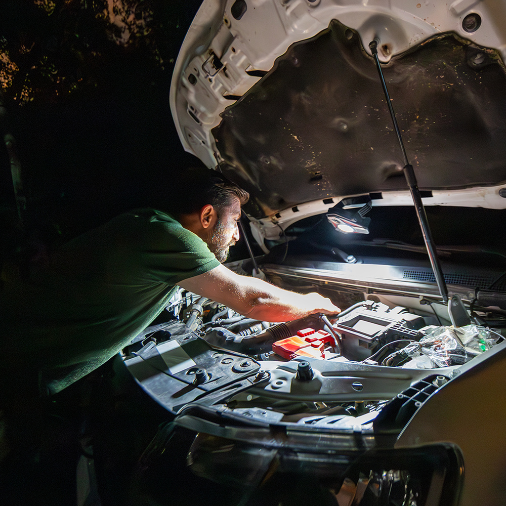 Ein Magnetfuß, ein 1/4-Zoll-Stativgewinde und ein Griff mit einem Drehbereich von 360° ermöglichen es, die Taschenlampe in jeder Position zu platzieren. Mit dem doppelten Bedienknopf können Sie die Helligkeit und Farbe des Lichts auch mit Arbeitshandschuhen ändern. Abgerundet wird das Ganze durch eine automatische Abschaltfunktion nach einer gewissen Zeit der Inaktivität und die Widerstandsfähigkeit gegen einen Sturz aus einer Höhe von 1 Meter.