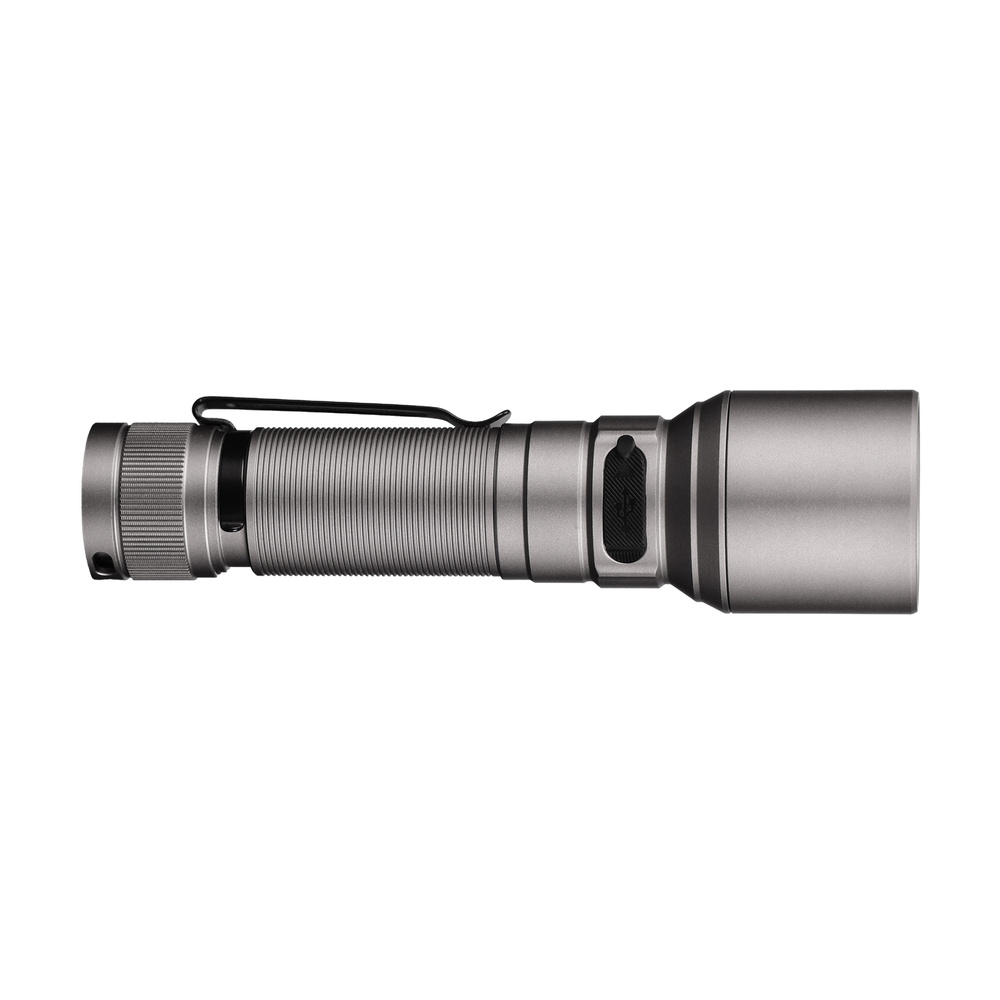 Für die Stromversorgung der Taschenlampe verwendet der Hersteller einen Akku vom Typ 21700 mit einer Kapazität von 5000 mAh. Ein voll aufgeladener Akku ermöglicht bis zu 68 Stunden Betrieb im Eco-Modus bei 30 lm Leistung. Der Akku kann über den USB-C-Anschluss am Gehäuse, der unter einem Silikonstecker versteckt ist, aufgeladen werden, ohne ihn aus der Taschenlampe zu entfernen. Der Ladezustand des Akkus wird durch eine LED auf der Bedientaste der Taschenlampe angezeigt.