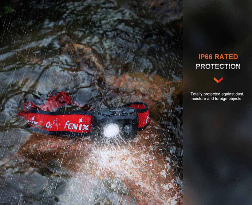Die HL16 ist mit einer Winkelverstellfunktion ausgestattet und erfüllt die IP66-Norm für Wasserdichtigkeit. Die Taschenlampe kann in 6 Modi betrieben werden, leuchtet mit weißem oder rotem Licht und wird mit 3 handelsüblichen AAA-Batterien betrieben.