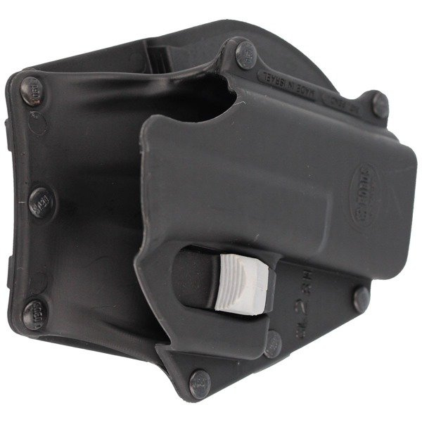 Holstermaterial - formgespritzte Polymerformel. Abzugsbügel-Verriegelungssystem - aktive Retention, die die Waffe auf dem Abzugsbügel hält, bis sie mit dem Zeigefinger des Halters losgelassen wird.