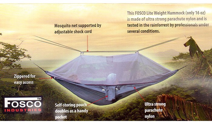 Leichte, aus strapazierfähigem Fallschirm-Nylon Hängematte mit integriertem Moskitonetz, hergestellt von FOSCO Unternehmen.