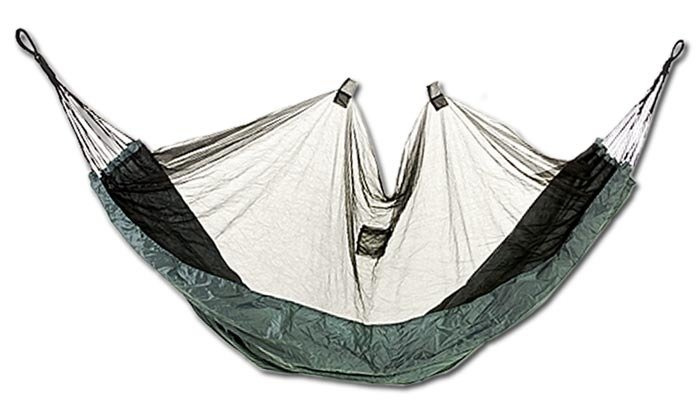 Gespannt zum Beispiel zwischen den Bäumen, ermöglicht sicheres und bequemes Ausruhen weg vom Boden. Das Moskitonetz hat einen Zweiwege-Reißverschluss, es schützt vor dem Eindringen von Insekten in die Nähe der schlafenden Person und garantiert somit einen hohen Erholungskomfort.