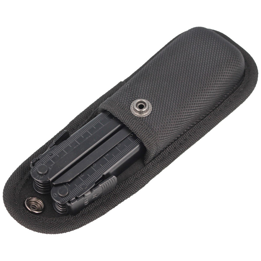 Die Scheide besteht aus ballistischem Nylon mit schwarzem Schnappverschluss. Die Scheide hat eine Gürtelbefestigung oder Befestigung, die es ermöglicht, in einer vertikalen Position zu tragen.