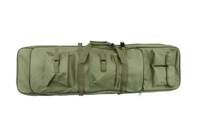 Eine 960 mm lange Waffentasche aus Nylon für einen ASG-Nachbau. Die Waffentasche hat zwei Fächer zum Tragen von Gewehren, das kürzere Fach ermöglicht das Tragen einer Waffe bis zu 65 cm Länge und das längere Fach ermöglicht das Tragen eines Gewehrs bis zu 96 cm im Inneren und mit der Klapphaube 110 cm.