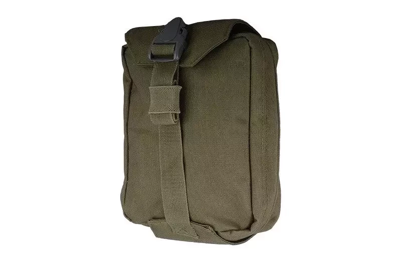 Der Erste-Hilfe-Kasten besteht aus zwei Komponenten: zum einen aus einer Trageplatte, die mit Hilfe des MOLLE-Systems an der Ausrüstung befestigt wird, zum anderen aus dem eigentlichen Erste-Hilfe-Kasten. Sein Inhalt wird durch ein Band mit einer Fastex-Schnalle gesichert. Er ist mit dem MOLLE/PALS-Befestigungssystem ausgestattet, wodurch er an Rucksäcken und taktischen Westen befestigt werden kann.