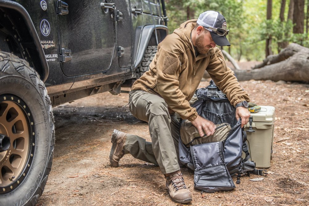 Die Konstruktion ist durchdacht, wobei der Schwerpunkt auf der Strapazierfähigkeit liegt - Verstärkungen an den Schultern und Ellbogen mit Nylongewebe erhöhen die Abriebfestigkeit und verbessern die Funktionalität beim Tragen eines Rucksacks. Netzeinsätze unter den Achseln sorgen für eine bessere Belüftung. Der Kapuzenpullover kann mit Klettverschlüssen an den Ärmeln individuell angepasst werden.