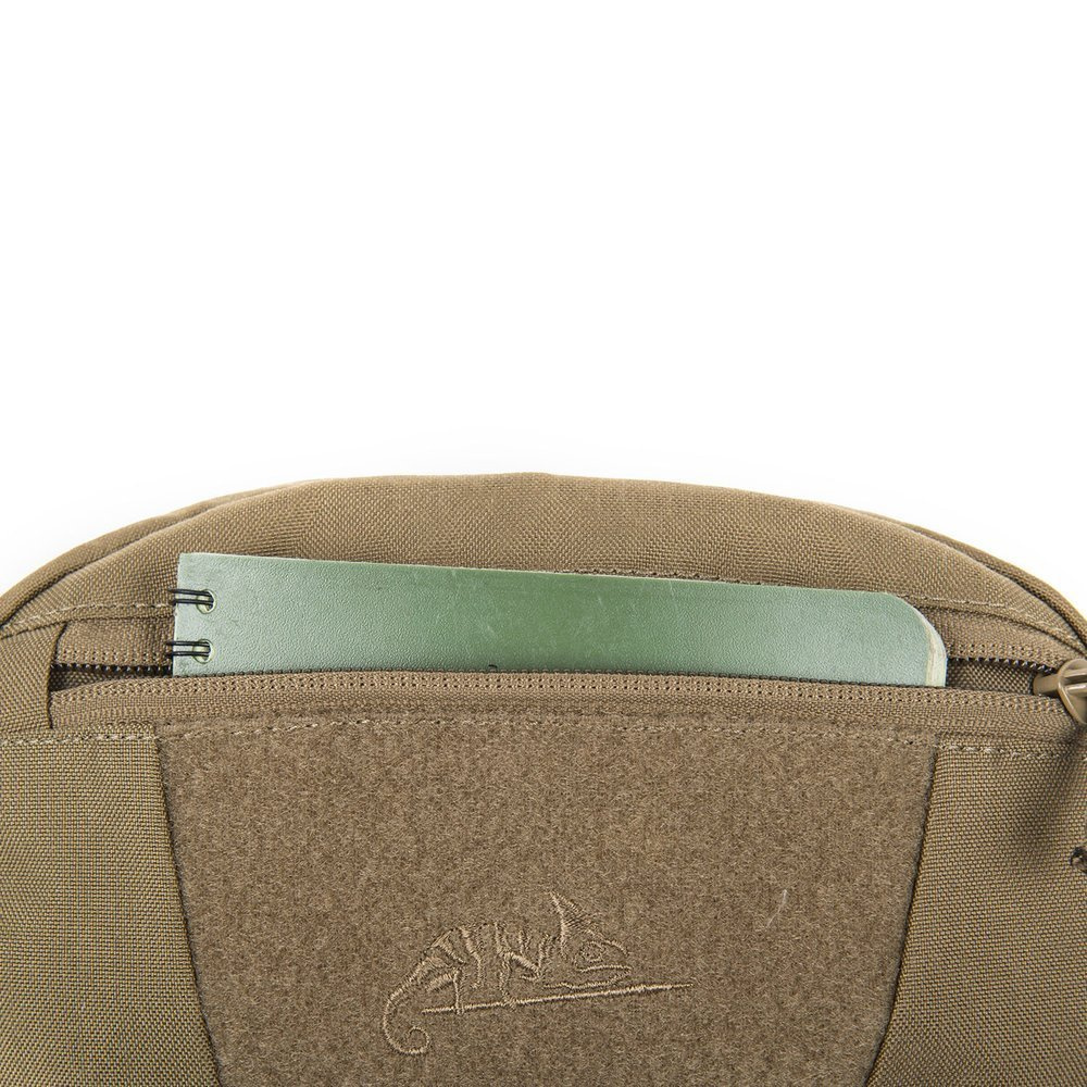 Zwei Außentaschen mit Reißverschluss (eine davon ist eine Stealth-Tasche, die sich auf der Innenseite des Rucksacks befindet) ermöglichen eine gleichmäßige Verteilung der Ladung. Der Zwei-Wege-Reißverschluss ermöglicht einen einfachen Zugang zum Hauptfach von beiden Seiten. Der verstellbare Hüftgurt kann als Brustgurt verwendet werden, wenn der Träger ihn unter einer Jacke verstecken möchte. Der Hüftgurt kann bei Bedarf auch ganz abgenommen werden. Mehrere elastische Bänder ermöglichen eine schnelle Integration des Rucksacks in jedes MOLLE/PALS-System. Das Klettverschluss-Panel auf der Außentasche kann für eine einfache Personalisierung verwendet werden.