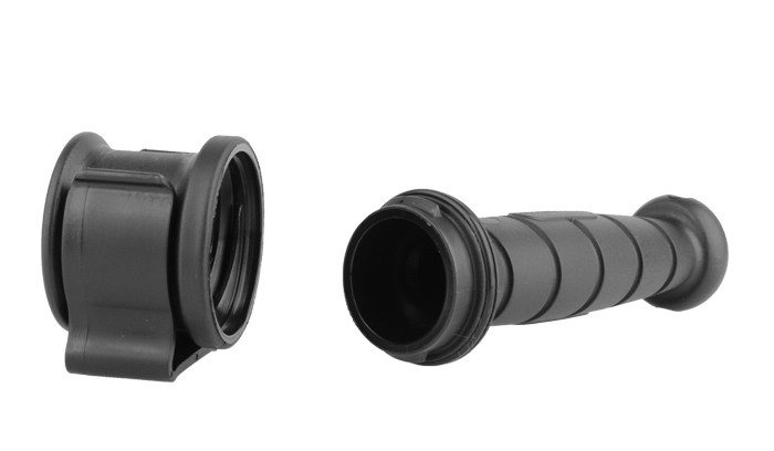 Im Inneren des Griffs befindet sich eine Aufbewahrungsbox für Angelschnur, Haken und anderes Zubehör. Die beiliegende Kunststoffklemme hält die aufgewickelte Schnur beim Transport und der Lagerung des Gerätes sicher fest.