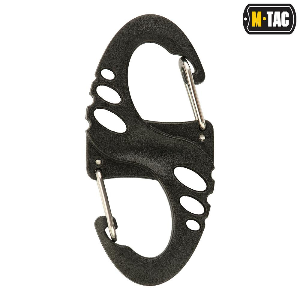 M-Tac S-Hook ist ein Doppelkarabiner aus Kunststoff und Stahl.Er ist mit einer rutschfesten Textur ausgestattet, die eine einfache Handhabung mit Handschuhen ermöglicht. Der Doppelkarabiner ist für die Befestigung der notwendigen, leichten taktischen Ausrüstung konzipiert und dank des Systems aus zwei Haken können an einem Teil Schlüssel befestigt werden, während das andere bequem an den Gürtelschlaufen oder am taktischen Rucksack.
