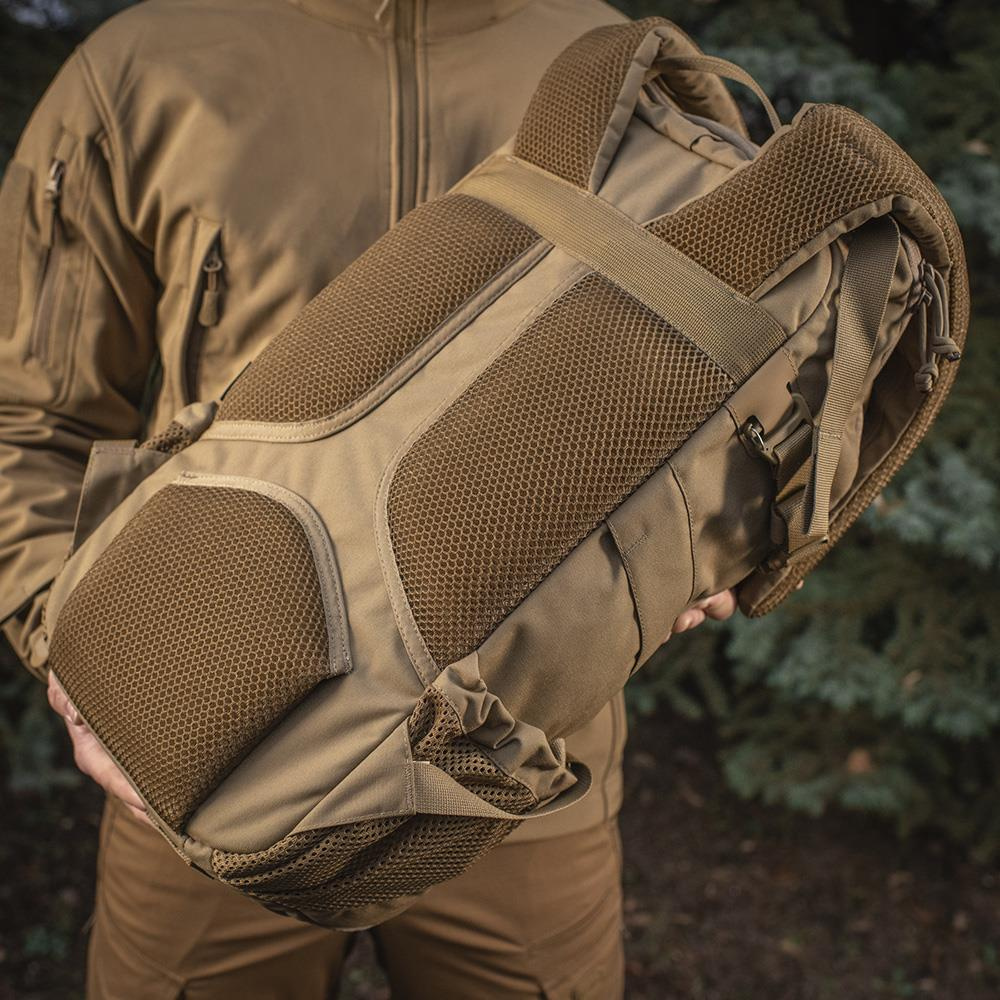 Der verwendete Reißverschluss ermöglicht es, den Rucksack wie einen Koffer zu öffnen, was die Organisation und die schnelle Entnahme des Inhalts erleichtert. Im Inneren befindet sich ein spezielles Fach für einen Laptop von bis zu 15,6 Zoll. Zusätzliche Verstrebungen in Form eines Kunststoffbodens, von Aluminiumschienen und einer Karbonstange sorgen für Stabilität beim Tragen schwerer Ausrüstung. Die Kompatibilität mit dem MOLLE-Standard ermöglicht die Anbringung zusätzlicher taktischer Taschen.