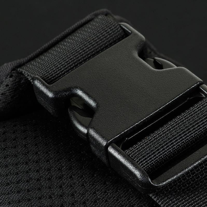 Die Rückseite der Tasche ist mit einem Mesh-Paneel ausgestattet, um die Luftzirkulation und den Tragekomfort zu verbessern. Der verstellbare Gurt mit Fastex-Schnalle ermöglicht eine schnelle Anpassung der Länge und ein einfaches Lösen bei Bedarf. Die Tasche ist so konzipiert, dass sie sowohl als Hüfttasche als auch als Schultertasche verwendet werden kann, was die Flexibilität bei der Verwendung erhöht. Befestigungsschlaufen und das MOLLE-System ermöglichen die Anbringung von zusätzlichen taktischen Taschen und Beuteln.