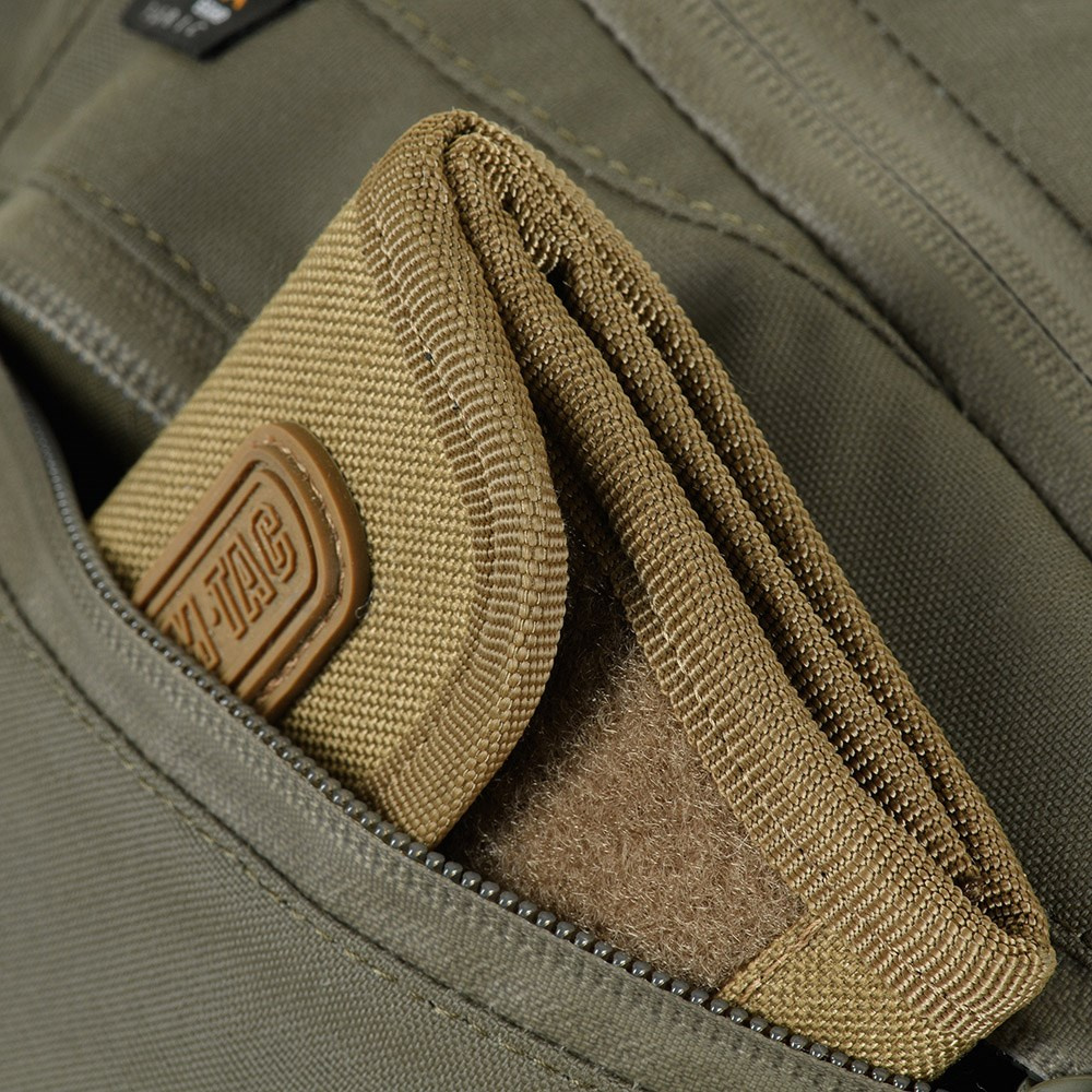 Die Sphaera Hardsling Bag Large ist mit zwei geräumigen Taschen ausgestattet, in denen notwendige Ausrüstung wie ein Multitool oder eine Taschenlampe untergebracht werden kann. Alle Taschen werden mit YKK-Reißverschlüssen verschlossen. Auf der Innenseite befindet sich eine Tasche zum Tragen eines Telefons, und an den Seiten der Tasche hat der Hersteller spezielle MOLLE-Steckplätze zum Anbringen zusätzlicher taktischer Ausrüstung angebracht.