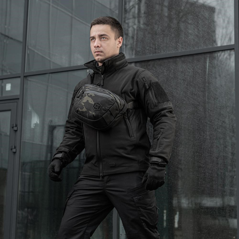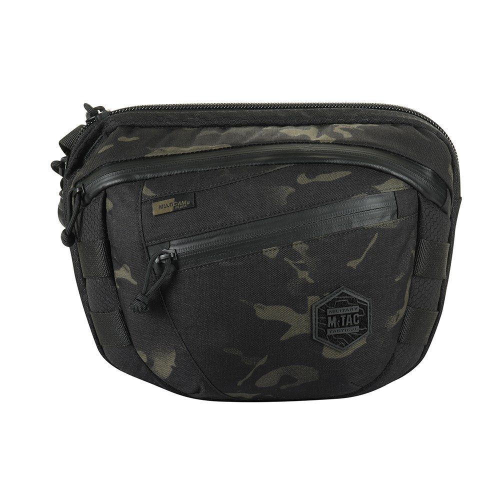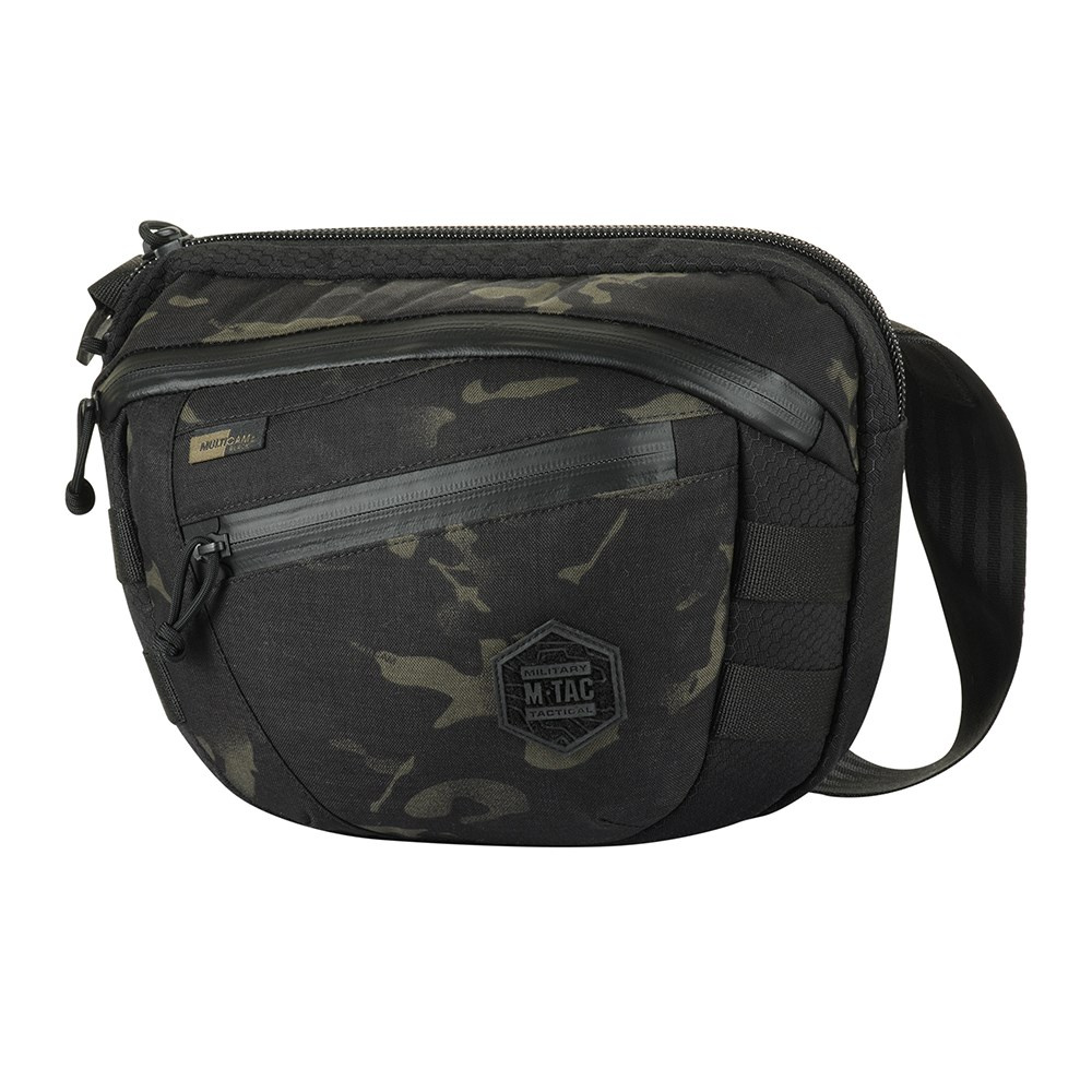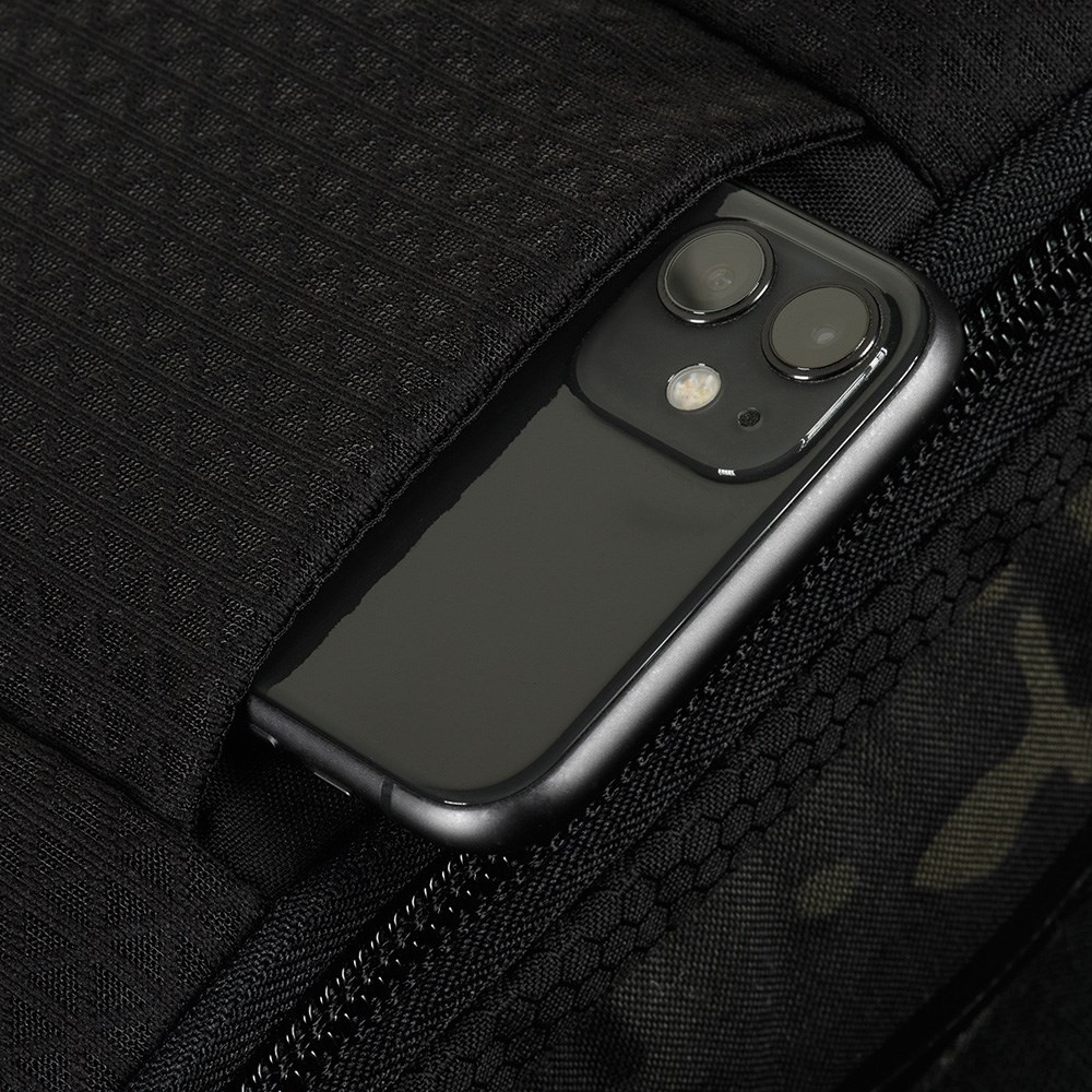 Die Sphaera Hex Hardsling Bag Large ist mit zwei geräumigen Taschen ausgestattet. Darüber hinaus befindet sich auf der Vorderseite der M-Tac-Tasche ein Klettverschlussfeld zum Anbringen von Morale Patch-Patches. Alle Taschen werden mit YKK-Reißverschlüssen verschlossen. Auf der Innenseite befindet sich eine Tasche zum Tragen eines Telefons, und an den Seiten der Tasche hat der Hersteller spezielle MOLLE-Steckplätze zum Anbringen zusätzlicher taktischer Ausrüstung angebracht.