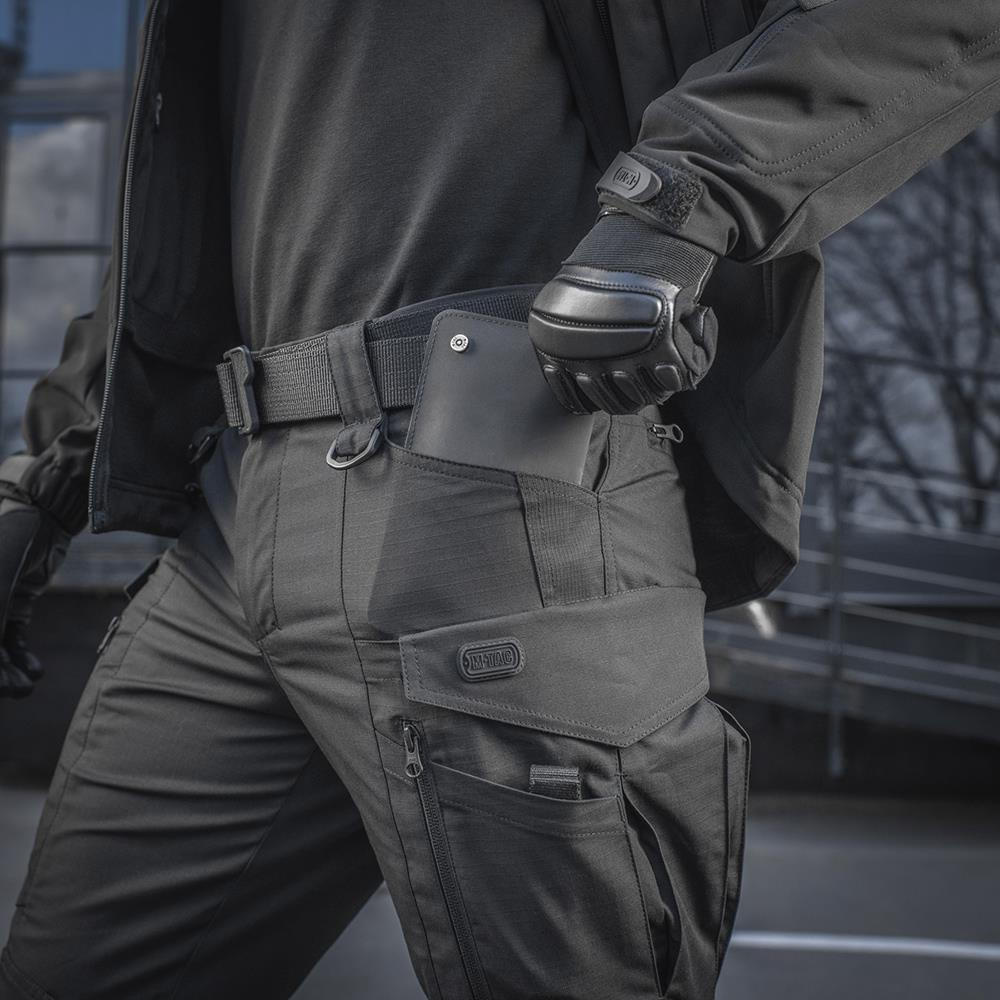 Die taktische Hose Conquistador Flex wird Ihr zuverlässiger Begleiter bei jeder "Outdoor"-Aktivität. Sie können sie zum Training, Schießen, Camping, Pendeln, für einen Spaziergang oder sogar zur Arbeit tragen. Die aus Polycotton gefertigte Rip-Stop Flex Hose ist widerstandsfähig gegen Stress und Abnutzung. Das reißfeste Material ist weniger dicht als Jeans und ähnliche Materialien, lässt die Luft frei um den Körper zirkulieren und sorgt für eine bessere Wärmeübertragung, ist aber gleichzeitig haltbarer und leichter zu trocknen dank einer schützenden Teflonschicht, die vor Wasser und Schlamm. Elasthan-Fasern verleihen dem Stoff Elastizität, wodurch sich die Hose bequem jeder Figur anpasst. Die Hauptidee bei der Kreation dieser Hose war, den Bewegungskomfort zu erhalten und diese Aufgabe haben sie zu hundert Prozent gemeistert - die Hose macht den Eindruck von Leichtigkeit, schränkt die Bewegung nicht ein und sieht stylisch und solide aus. Gut sitzende Hosen tragen sich so bequem, dass sie wie Jogginghosen aussehen.