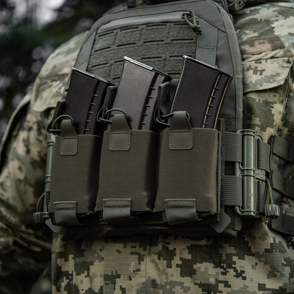 - Ausgestattet mit einem Laderaum für 3 Gewehrmagazine des AR/AK-Systems, die mit einer WooJin-Schnalle befestigt werden