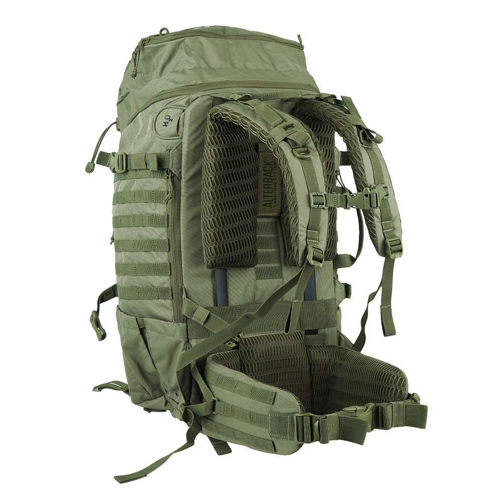 Bequeme, anatomisch konturierte Hosenträger sind vertikal verstellbar. Darüber hinaus tragen ein elastischer Brustgurt mit integrierter Pfeife, Schlaufen für einen Schlauch vom Trinksystem, D-Ringe und Befestigungsgurte für Zubehör zur Zweckmäßigkeit bei. An der Unterseite befindet sich ein abnehmbarer Hüftgurt, der mit einer zusammengesetzten Schnalle verschlossen wird, ebenfalls im MOLLE-System. Eine Besonderheit dieses Rucksacks ist ein Außenfach zum Tragen eines Helms.