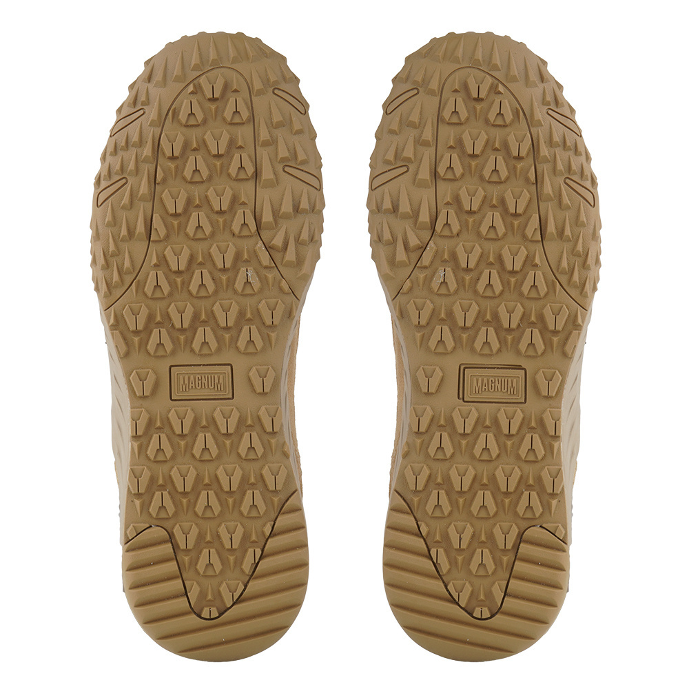 Magnum Motru Mid WP Militärstiefel bestehen aus 60 % Wildleder und 40 % Textilmaterial. Sie haben eine wasserdichte Membran und einen weichen Einsatz aus MESH und Polyurethanschaum.
