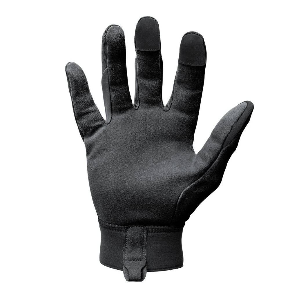Die Innenseite der Handfläche ist mit synthetischem Wildleder bezogen, das im Notfall zum Abwischen beschlagener Optiken oder Schießbrillen verwendet werden kann. Die Daumenspitze sowie der Zeige- und Mittelfinger jeder Hand sind mit einem Material überzogen, das die Bedienung von Touchscreens ermöglicht. Der Handrücken besteht aus gewebtem Nylon, das sich nahtlos in die Handbewegungen einfügt.