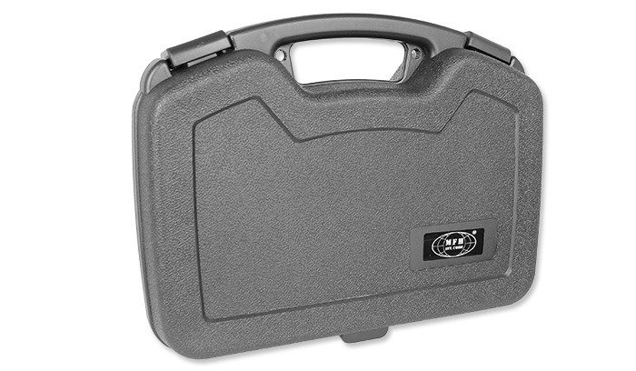 Aus strapazierfähigem Polymer gefertigter Profikoffer für Handfeuerwaffen und Zubehör. Abschließbar mit zwei Vorhängeschlössern, auf der Vorderseite hat das MFH Firmenlogo.
