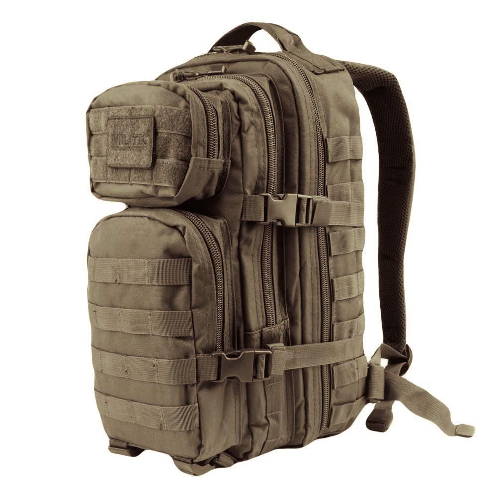 Kleine Assault Pack hergestellt von Mil-Tec Unternehmen in Coyote Brown Farbe. Hat eine Gesamtkapazität von etwa 20 Litern.