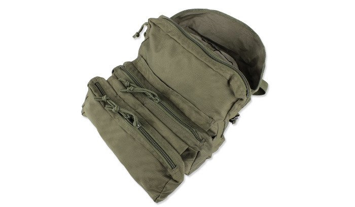 Die Konstruktion der Tasche besteht aus hochwertigem Polyester mit hoher Abrieb- und Feuchtigkeitsbeständigkeit. Das Innere der Tasche ist in drei geräumige Fächer unterteilt, die mit Zwei-Wege-Reißverschlüssen geschlossen werden, was eine logische Anordnung von Ausrüstungsgegenständen wie z. B. Verbandsmaterial ermöglicht. Eine hosensichere Klappe schützt den Inhalt vor versehentlichem Öffnen und äußeren Einflüssen.