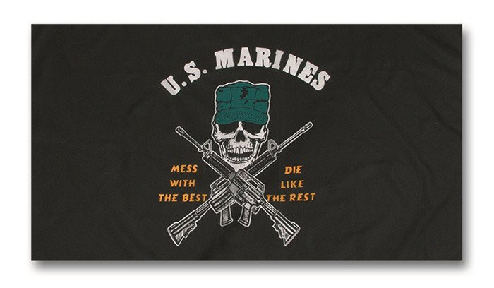 Flagge mit zwei Metallösen zum Aufhängen an einer Wand, einem Mast oder einer anderen Oberfläche. Komplett aus Polyester in der Standardgröße von 90 x 150 cm. Dank des verwendeten Gewebes ist sie sehr verschleißfest und langlebig. In Kombination mit einem Tarnnetz können Sie damit einen Raum mit militärisch-taktischer Atmosphäre schaffen.