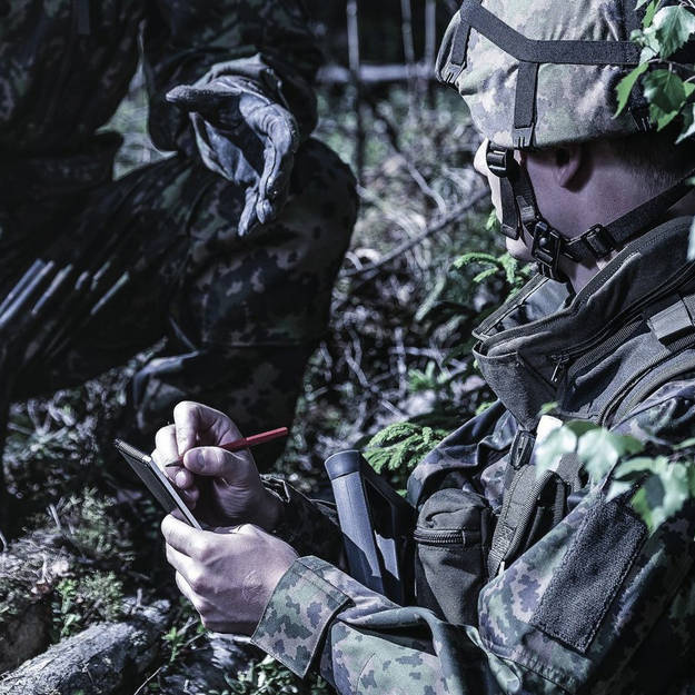 Wasser- und ölfestes Notizbuch mit Seiten aus Steinpapier, das für den Einsatz unter extremen Bedingungen konzipiert ist. Es kann mit einem normalen Kugelschreiber oder Bleistift beschrieben werden, aber auch mit der Spitze eines Metallgegenstandes, wie z. B. einem Schlüssel oder einer Kugel. Es ist ideal zum Schreiben von Notizen während der Ausbildung, der Aufklärung oder bei Einsätzen. Es eignet sich auch gut für andere Berufe, die im Freien arbeiten, sowie für den privaten Gebrauch von Personen, die gerne in der Natur unterwegs sind.