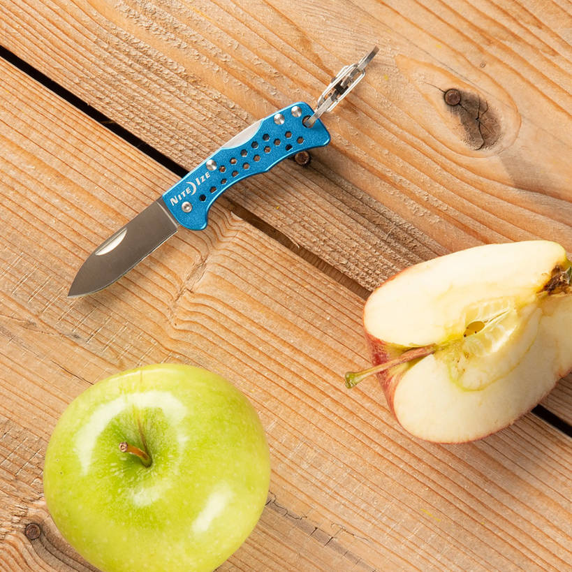 Kleines Schlüsselanhänger-Messer mit einer klappbaren Klinge. Es hat einen gebogenen Griff für verbesserten Benutzungskomfort und einen kleinen S-Binner Karabiner enthalten, um das Messer an Ihrem Rucksack, Schlüssel oder Gürtelschlaufe zu befestigen. Die Klinge ist aus 420 rostfreiem Stahl gefertigt und verfügt über einen Back Lock Klingenverriegelungsmechanismus.