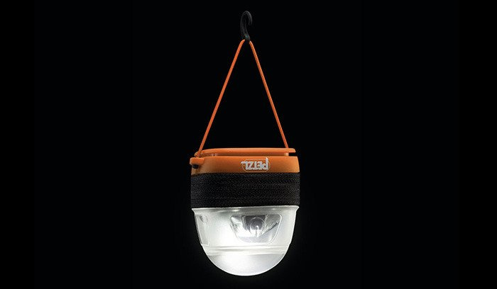 Schutztasche für die kompakten Stirnlampen von Petzl, die das Licht in den Laternenmodus streut.