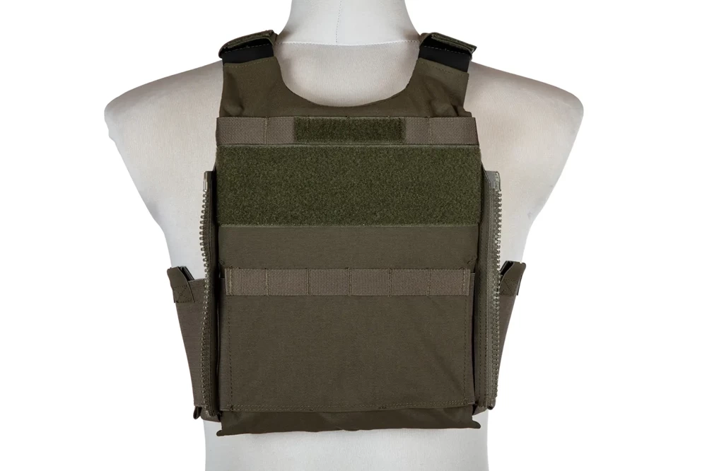 Das flache Design zeichnet sich durch maximale Gewichtsreduzierung aus, wobei die Möglichkeit zur Verwendung von ballistischen SAPI M-Platten erhalten bleibt. Die vollen Kummerbundgurte wurden durch ihre elastische Version ersetzt, die mit Taschen ausgestattet ist. Auf der Vorderseite der Weste befinden sich Schnallen für eine zusätzliche Frontplatte, während der hintere Teil mit Reißverschlüssen für die Montage von Zip-on-Panels ausgestattet ist.