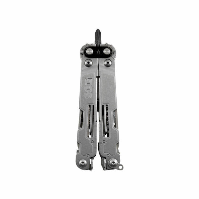 Multitool mit 21 Werkzeugen ausgestattet. Die Bedienung basiert auf dem patentierten Compound Leverage Mechanismus. Es funktioniert durch die Verwendung mehrerer Drehpunkte, die einen größeren Hub des Griffs im Verhältnis zur Bewegung der Zange erzeugen, wodurch die Arbeit mit ihnen leichter und einfacher wird. Das Design ermöglicht das Öffnen mit einer Hand. Ein Satz von 12 austauschbaren Bits ist im Lieferumfang enthalten. Es hat eine Nylonhülle zum einfachen Tragen am Gürtel.