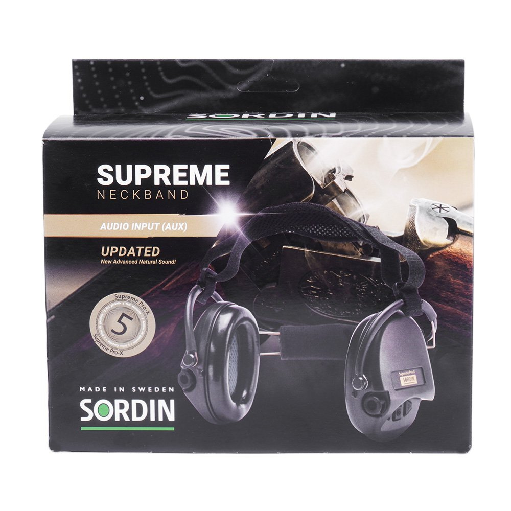 Die elektronischen Gehörschützer Supreme® Pro-X der renommierten schwedischen Firma Sordin schützen vor gefährlichen Lärmpegeln und ermöglichen gleichzeitig das Hören von Umgebungsgeräuschen. Diese werden von zwei Richtmikrofonen, die an der Außenseite jeder Haube angebracht sind, erfasst und über Lautsprecher im Inneren des Gehörschutzes wiedergegeben.