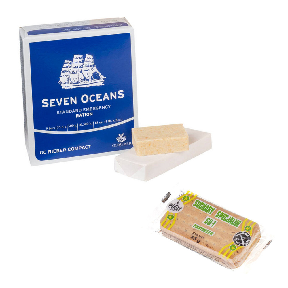 - Trockenproviant - Dicht verpackte Ration, die mit Wasser oder Milch gemischt werden kann, und militärischer Spezialzwieback SU-1, der lange haltbar ist und gemeinhin als Panzerwaffeln bekannt ist.