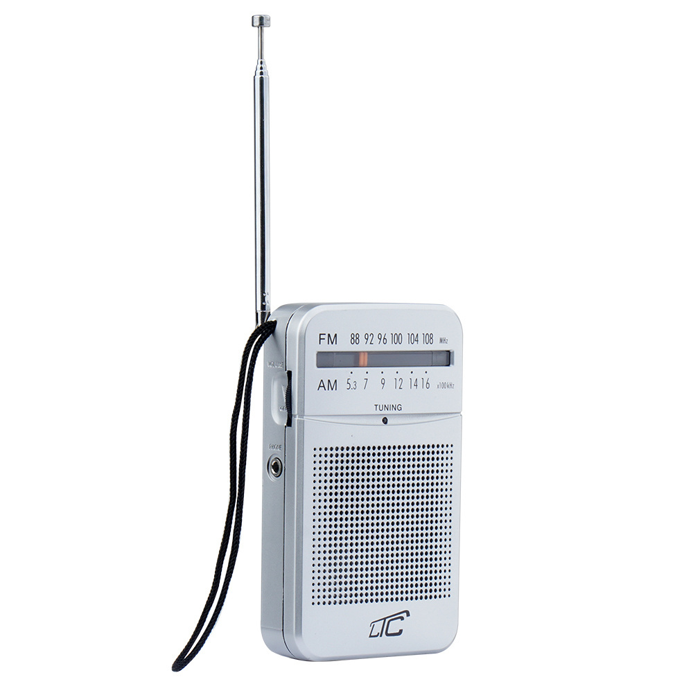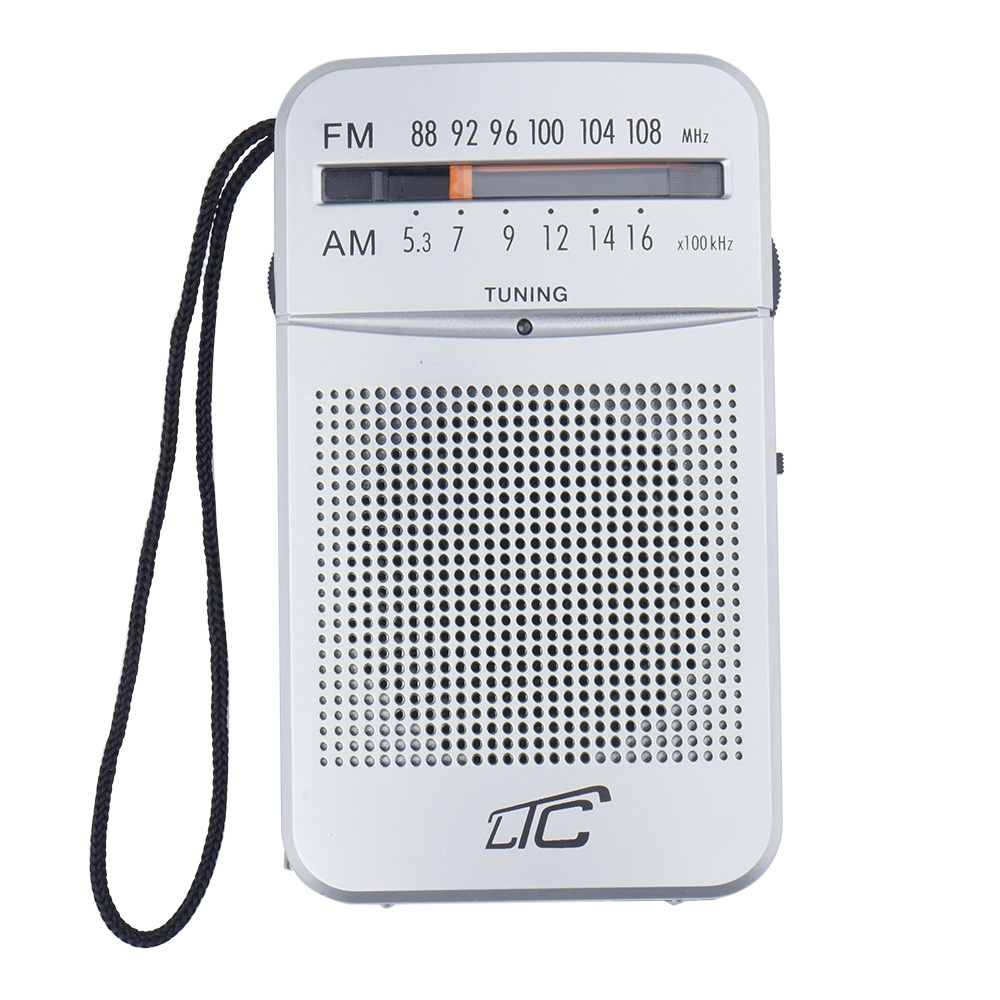 - Batteriefunkgerät - Das kompakte, mit zwei AA-Batterien betriebene Gerät verfügt über einen Kopfhöreranschluss und eine ausklappbare Antenne.