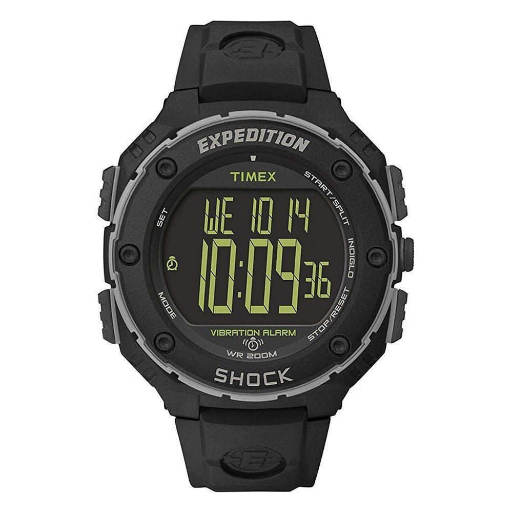Armbanduhr Timex Expedition Shock XL Vibrationsalarm aus Expedition Serie. Mit einem Chronographen, Vibrationsalarm und Timer, ist diese klassische digitale Outdoor-Uhr entwickelt, um die Strapazen des täglichen Gebrauchs zu widerstehen.