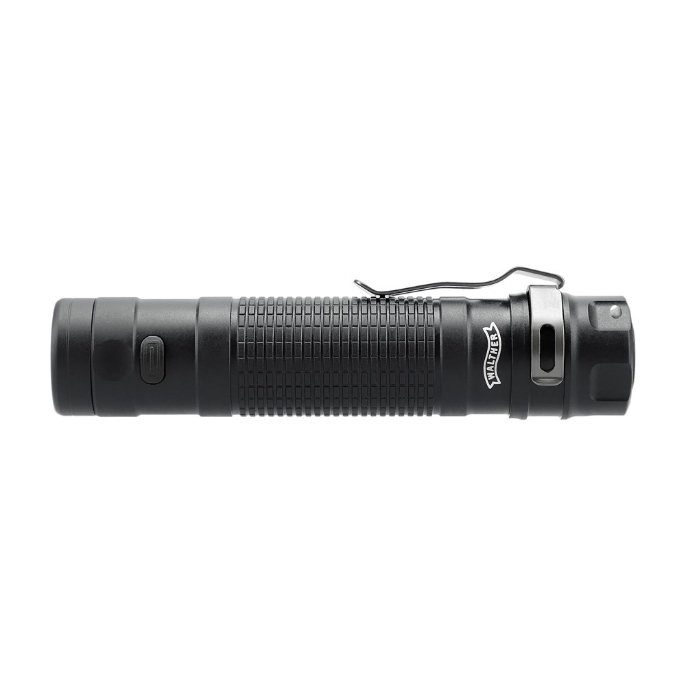 Eine effektive Leuchtweite von bis zu 150 Metern und eine Betriebsdauer von bis zu 30 Stunden sind die Stärken der Walther-Taschenlampe. Das Gehäuse bietet eine hohe Widerstandsfähigkeit gegen mechanische Beschädigungen und volle Wasserdichtigkeit nach IPX8-Standard. Betrieben wird sie mit zwei CR123A-Batterien oder einer einzelnen 18650er- oder 21700er-Zelle.