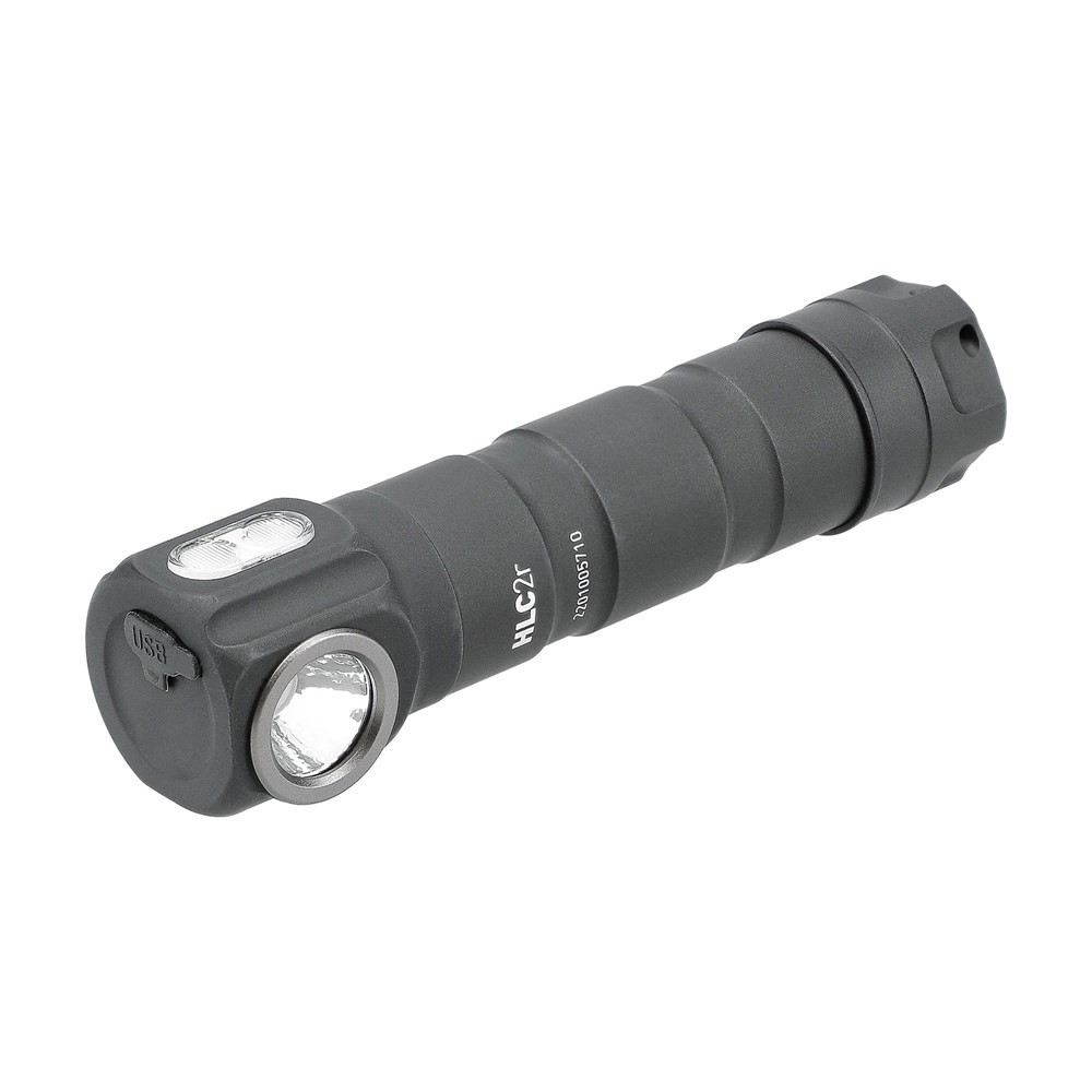 Das Modell HLC2r bietet fünf Weißlicht-Helligkeitsmodi: 5, 40, 150, 400, 1000 Lumen und einen Signalmodus. Es zeichnet sich durch ein zusätzliches rotes Licht aus, mit dem Sie Ihre Position gut markieren können und das Ihre Sehkraft nicht ermüdet. Auf der Rückseite der Taschenlampe befindet sich ein großer Knopf, mit dem Sie die Intensität des weißen Lichts an Ihre aktuellen Bedürfnisse anpassen können. Oberhalb der roten LED befindet sich eine Taste, mit der Sie den Modus ändern können.