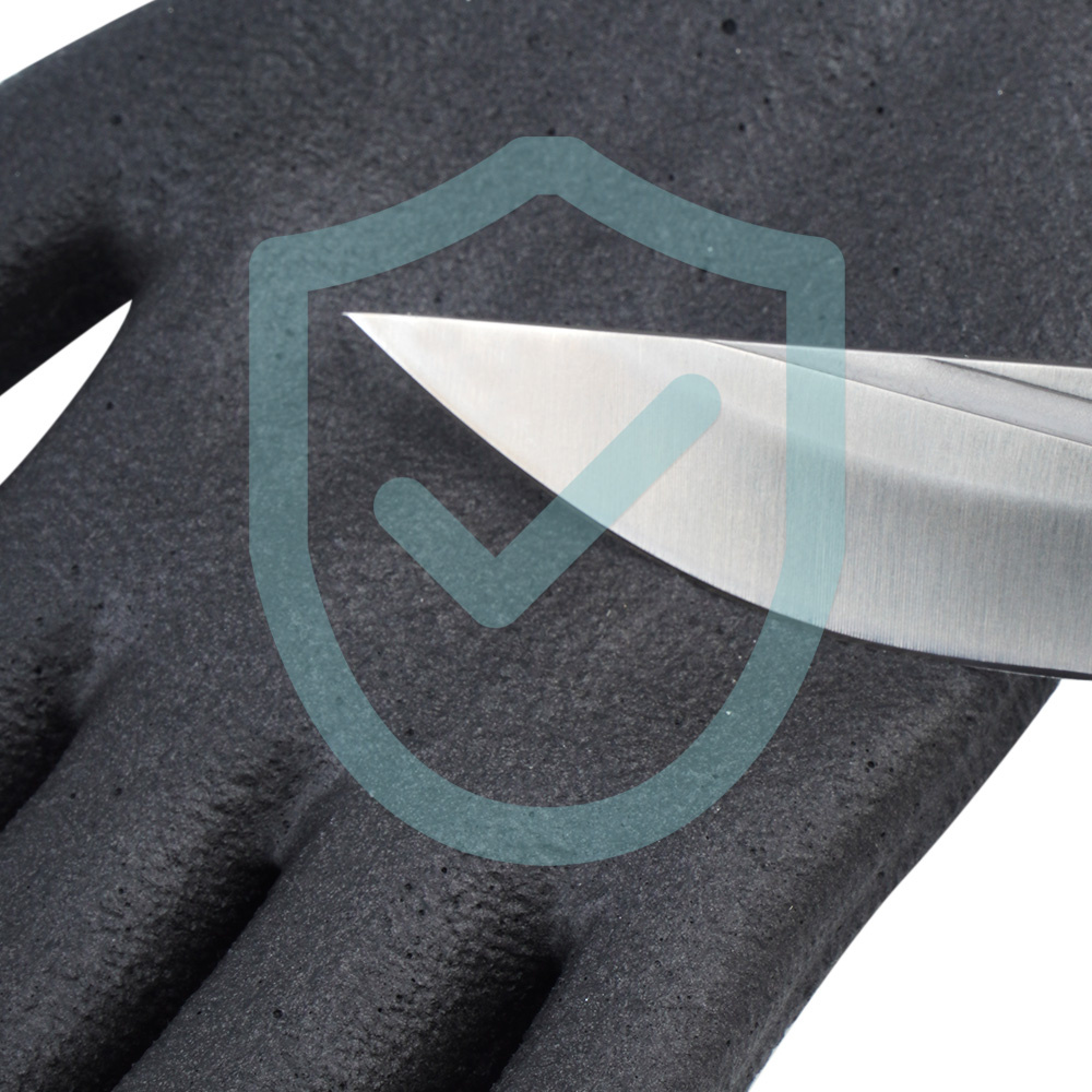 Das Gewebe der Handschuhe besteht aus Metall-Aramid-Polyester-Fasern. Die Innenseite ist mit einer speziellen Air-urea-Beschichtung versehen, die auch bei längerer, starker Beanspruchung sehr widerstandsfähig ist. Die Handschuhe erfüllen die ANSI A7-Norm, d. h. sie halten einem Druck von bis zu 4.000 g auf die Klinge stand. Darüber hinaus haben die Handschuhe die Einstufung Heat 1, was bedeutet, dass sie bei Temperaturen von bis zu 100 °C haltbar sind.