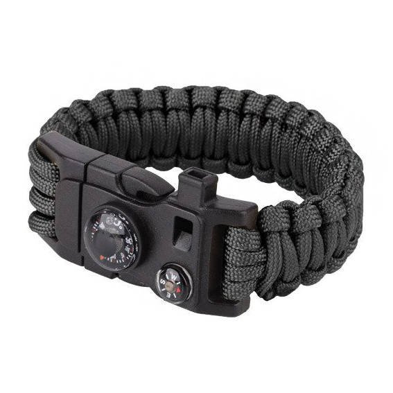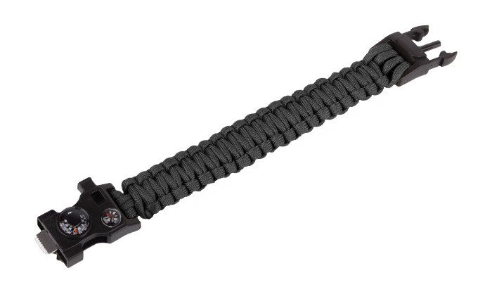 The bracelet has been equipped with a multifunctional composite buckle containing: button compass, thermometer, whistle, flint (rod and plate) and micro-tool.