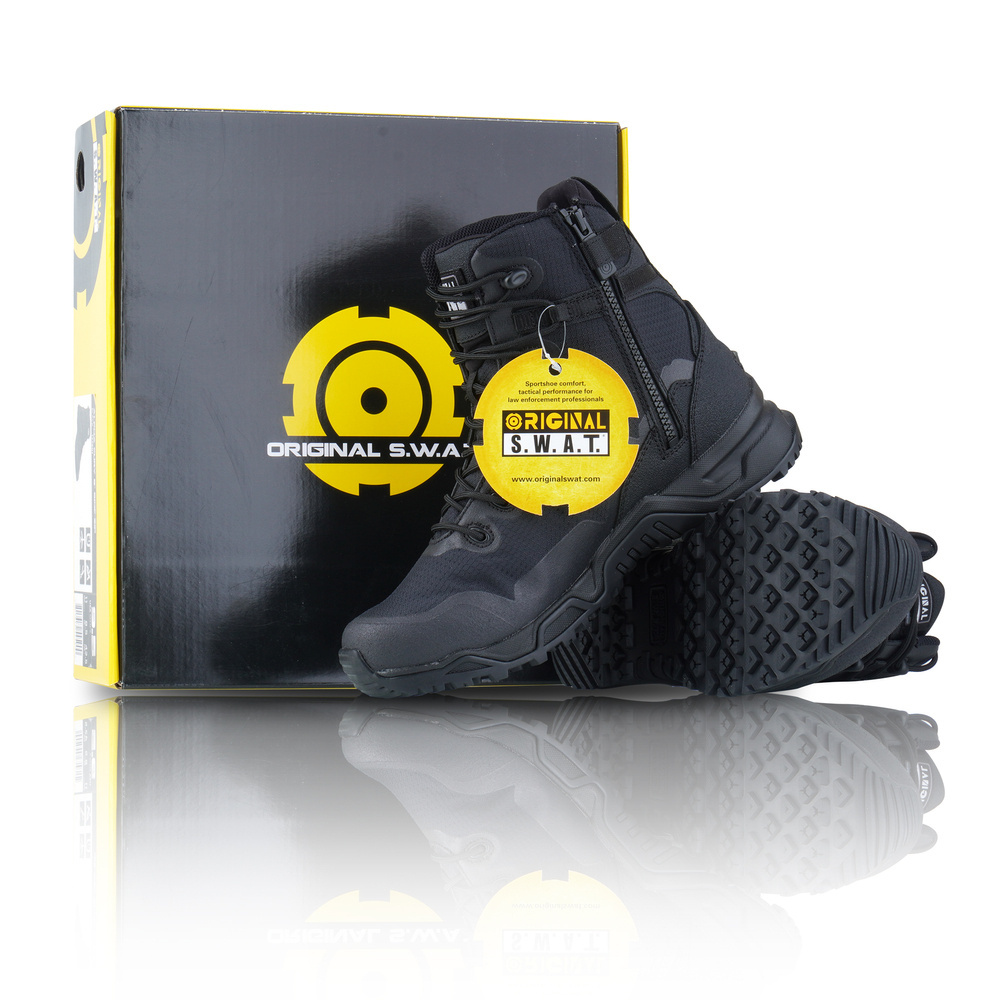 High military boots with a side zipper, with an 8 inch upper. The outer sole is made of non-slip rubber, and the upper structure is based on PU microfiber. The insole inside the shoe is made of soft EVA foam with increased density.