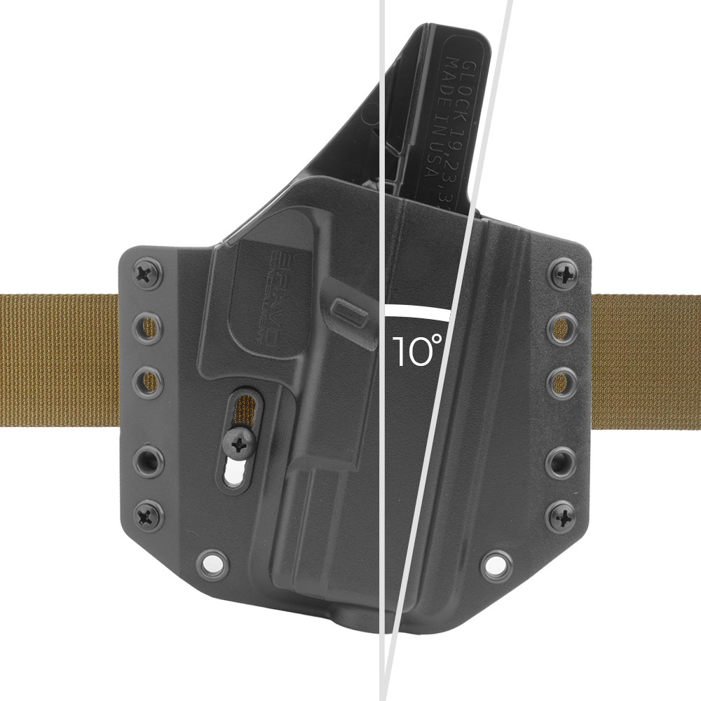 Durable external polymer holster for Glock 19, 23, 32 - gen. 3 - 4, Glock 19 - gen.5, Glock 19X, 19M, 45 oraz Glock 19 MOS gen. 4 - 6 pistols. Pull type holster with the possibility of smooth retention adjustment.