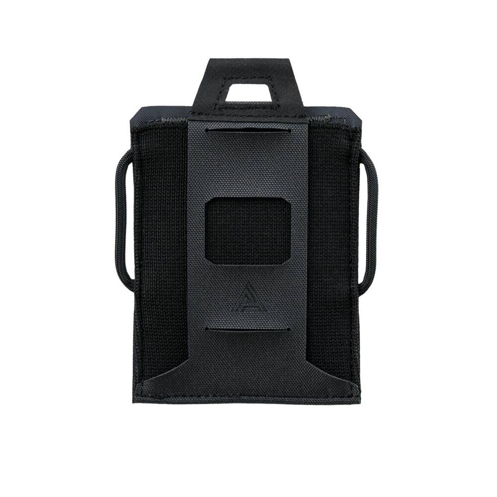Single Flat Magazine Pouch from Direct Action to carry one AR or AK type rifle magazine. Additionally, it will accommodate a compact size radio without removing the antenna. When emptied, the pouch is extremely flat, so it will not significantly protrude above the vest it is mounted on.