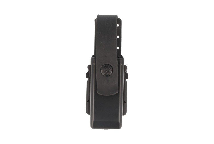 Sophisticated shape of the internal spring keeping the magazine in the holster makes it easy to pull it out very quickly. A fastening flap additionally protects the magazine being carried and its shape makes it easy to open the loader even with thick gloves. The holster is made by injection moulding from crushproof polymer in black.